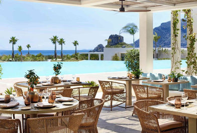The dining options at Ikos Aria are diverse, ranging from premium buffet-style to gourmet à la carte menus available at seven restaurants. Ikos has earned a reputation for its Michelin-starred menus, innovative dining experiences, and picturesque locations. Guests can also enjoy evening entertainment, such as live music, while the spa offers indulgent, personalized treatments. Younger guests are well catered for with mini and teen clubs and their own dedicated pool.
