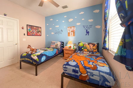 Downstairs, toward the front of the home, are two themed rooms that younger guests will love. Each features twin beds and vibrant decor: Bedroom 3 is a must-see for Minions fans and includes a private en-suite, while Bedroom 4 celebrates the world of Toy Story, making it the perfect spot for fans of Woody and Buzz to recharge.