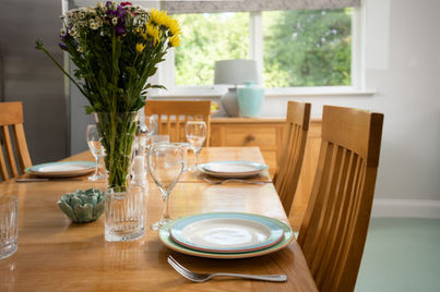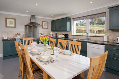 Designed for both style and ease of movement, the cottage is accessed via a smooth ramp leading into a grand, tiled entrance hall. At the heart of the home is a contemporary designer kitchen, featuring elegant granite worktops and premium appliances, including an American-style fridge-freezer, dishwasher, and washer-dryer. The space is anchored by a large oak dining table, perfect for hosting up to ten guests in total comfort.
