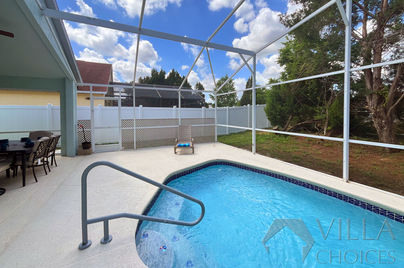 Relax and recharge at your west-facing private pool, completely secluded with no rear neighbors. Take a refreshing swim, then dry off under the warm Florida sun while catching some rays. A convenient door connects directly to the main bedroom’s en-suite bathroom, so towels are always close at hand without tracking water through the villa. Savor a chilled drink or an alfresco meal at the covered dining area as you unwind and plan your next Orlando adventure.