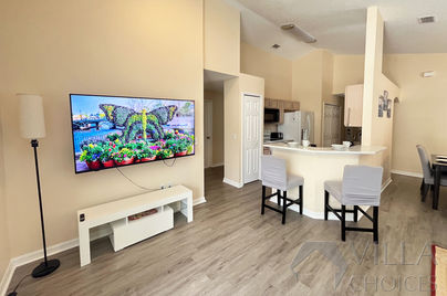 Slip off your shoes and unwind in this welcoming open-plan vacation villa. The fully equipped kitchen is positioned to the right and includes all the appliances and utensils you’ll need to prepare delicious meals. Begin your morning at the breakfast bar with tea and toast before heading out to experience all that Orlando has to offer.