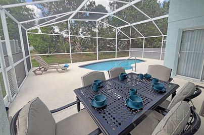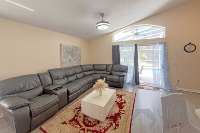 This privately owned vacation villa is set within the Royal Palms community in Davenport and offers four bedrooms with sleeping arrangements for up to nine guests. The home boasts a west-facing private pool with no rear neighbors, providing added privacy.