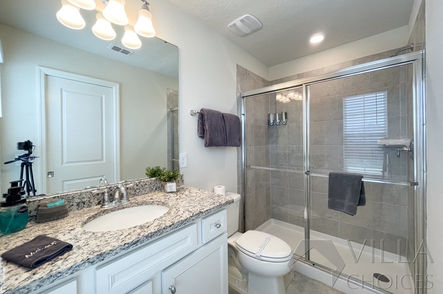 After an action-packed day at the theme parks or local shopping malls, this villa serves as the ultimate retreat for rest and rejuvenation. The elevated pool deck ensures complete privacy with no rear overlooking neighbors, allowing everyone to splash in the private pool or enjoy a soothing soak in the spa in total tranquility.